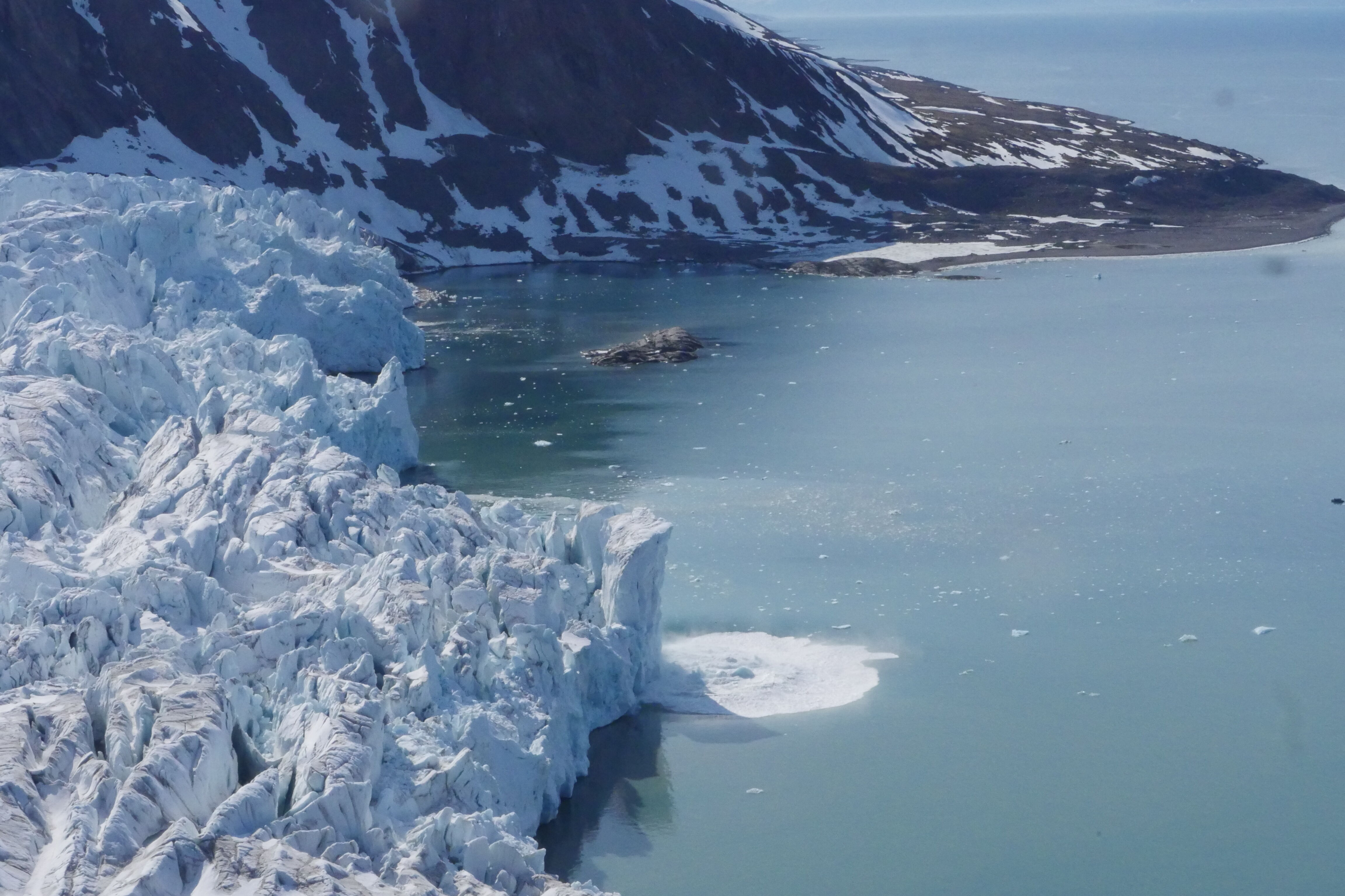 This morning, we awoke to a spectacular blue-sky day in Bellsund in the southwestern part of Svalbard. After morning introductions and briefings, our scouting parties went out to secure a landing in Van Mijenfjorden. On board guests learned photo tips from our photo instructor Brian Holiday. While ashore, with our expedition staff, guests were able to explore the terminal moraine and lagoon of Recherchebreen (The Research Glacier). While some of us learned about the glaciated landscapes, others enjoyed the bird life, while a few others developed a new appreciation of the challenges of crossing the soft sediments of glacial silt.