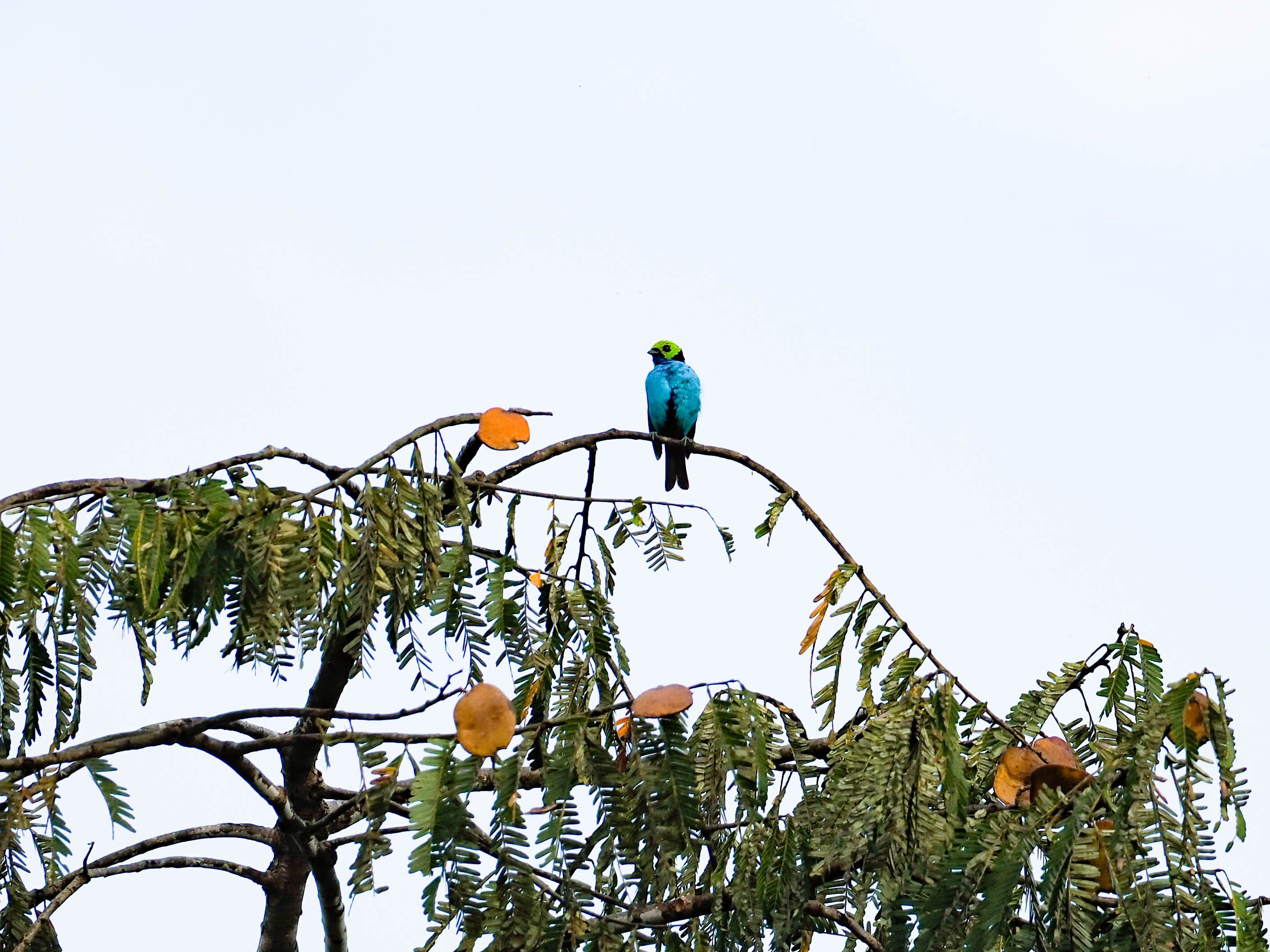 As we explored the forest in the evening, we entered into caiman kingdom! We saw several of these reptiles resting on floating vegetation in the shallow waters. The trees were also full of surprises — we observed flocks of blue-and-yellow macaws, to the delight of everyone!