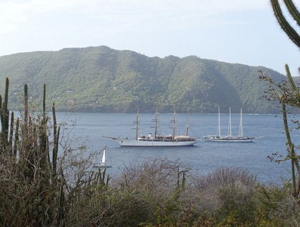 The sun rose over the Grenadines at 6:10 a.m. There was a sharp northeast wind blowing and the waves were cresting and breaking with white foam. Last night’s film Round Cape Horn by Irwin Johnson came immediately to mind as the wind this morning was singing loudly as it rushed through our riggings. The captain dropped anchor in Admiralty Bay at 7:29 a.m. facing the lovely village of Port Elizabeth, our immediate destination. We boarded our tenders and landed in Port Elizabeth after a brief ride. There we boarded our covered pickup trucks for our visit to this lovely isle.