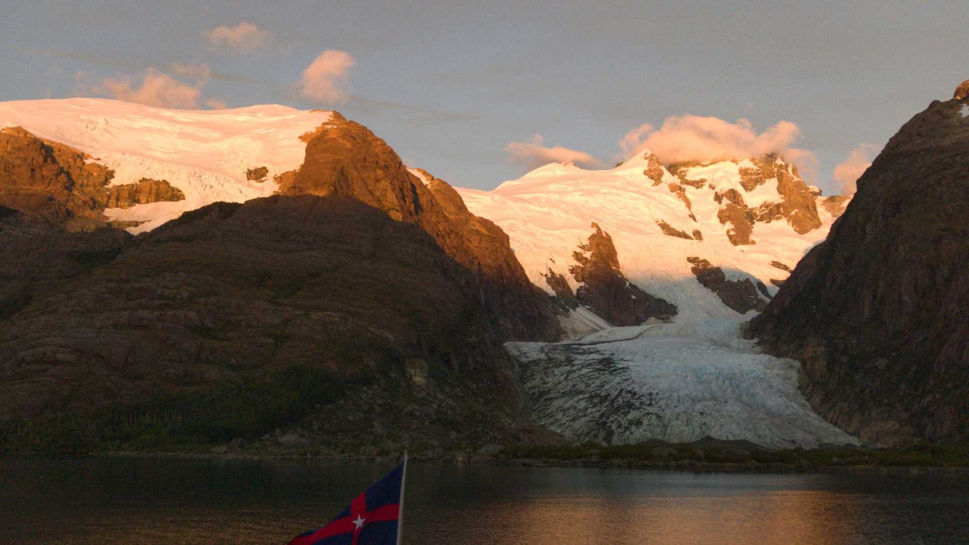 Today we were greeted by the first sun rays illuminating the ice of Bernal Glacier. National Geographic Orion has sailed into the Montañas Fiord, in which this glacier is located. After breakfast we started our operations to land and hike to the glacier’s terminus, where we could get face to face with ice that is several thousand years in age. We all had a memorable experience by spending the morning in front of this glacier.