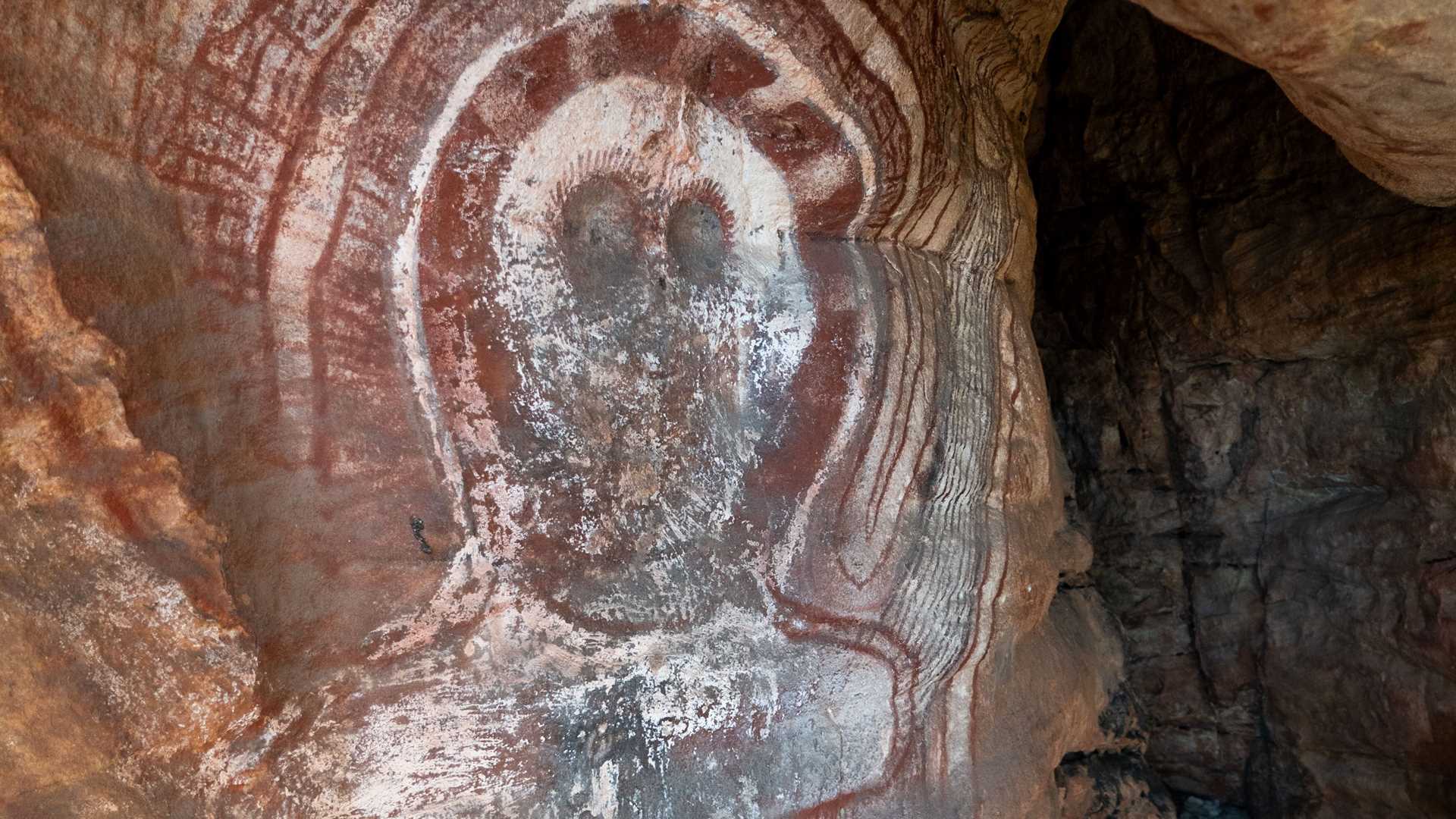 Here, the powerful presence of the Wandjina spirits graced us. These revered deities, masters of weather and creators of the elements, stood tall in their iconic art form. Originating from the Kimberley region in Western Australia, Wandjina art emerged as a profound expression of Indigenous culture. The circular countenances of these ancestral spirits, crowned with elaborate headdresses, seem to echo through time, carrying with them tales of spirituality and myth.