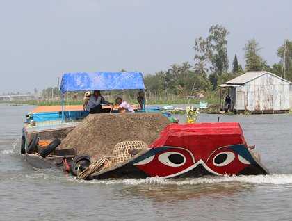 We started the day with a fine breakfast in the Viceroy room before disembarking for Binh Tanh village via local boats. Binh Tanh is a small village on an island bounded by the mighty Mekong to the south and a much smaller channel to the north. As we putted up the channel we saw the local villagers going about their daily life, which included a large boat in dry dock, numerous floating houses and fish farms, and an assortment of boats big and small ferrying people and cargo back and forth along the waterway. After negotiating an intersection of canals we landed at the ferry port of Binh Tanh village.