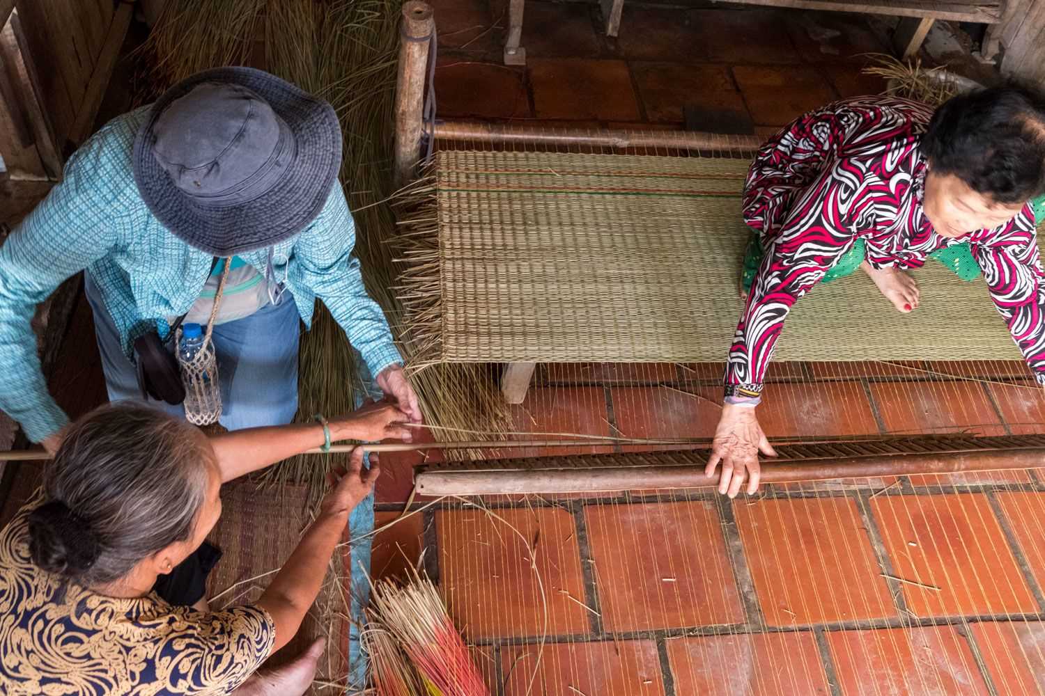 The day commenced with a short ride in the longboat to explore the local community of Sadec on Binh Thanh Island. Here we wandered through the village, meeting with elders at the local temple and then watching locals use traditional methods to weave reed mats that are sold throughout Vietnam.