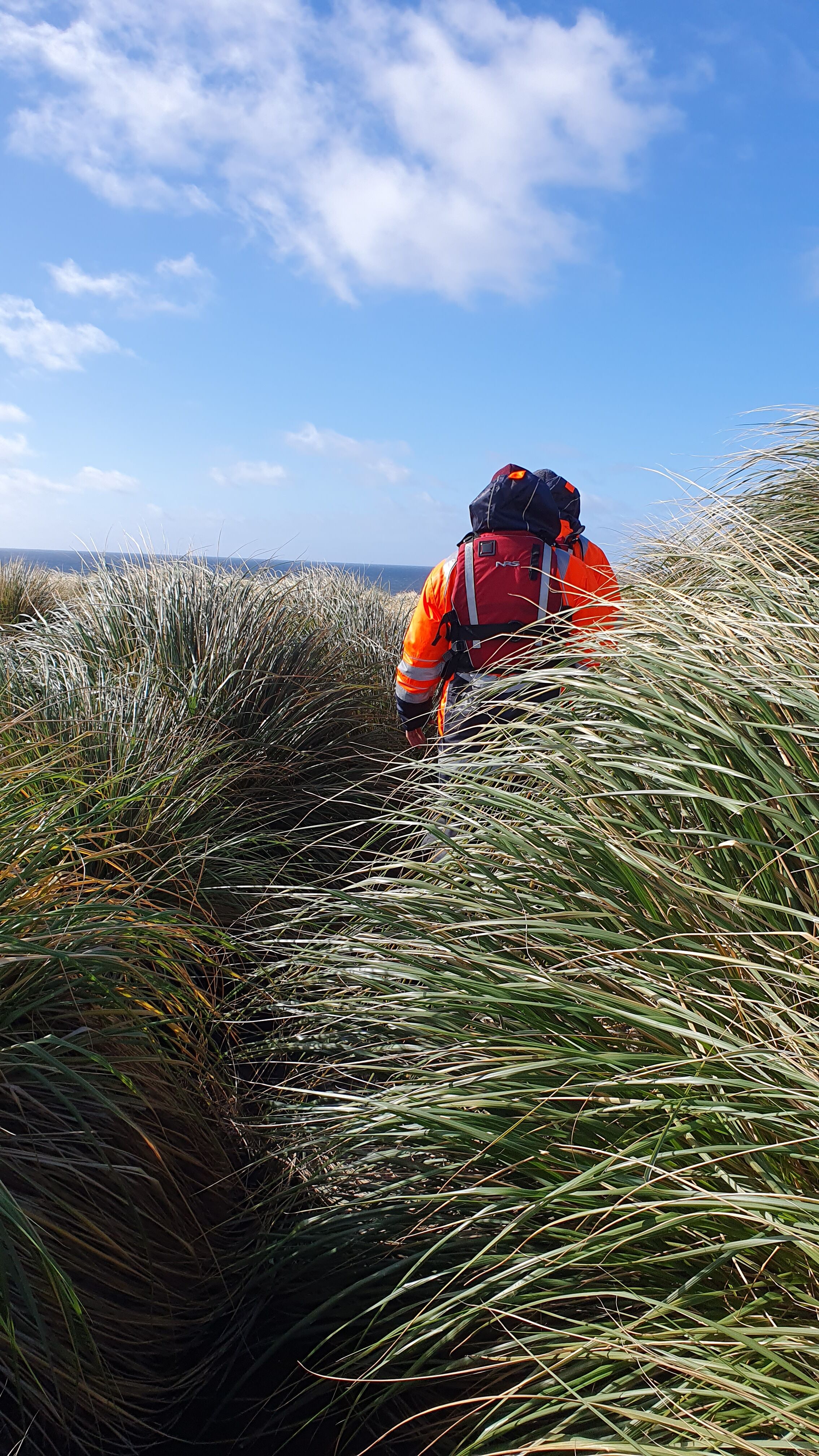 We started to explore the island by hiking to the local rockhopper penguin colony. It was a nice and easy stroll between cows, Magellanic penguins, Upland geese, and sheep. Once we approached the cliffs, we got to walk between the tussac grass again and had wonderful views over the rockhopper penguin colony. Those who paid attention even spotted a single macaroni penguin, and a few lucky ones saw a king penguin at the landing site. That made five penguin species within a single morning. And in this case, it was even a Monday morning. What a start to the week.