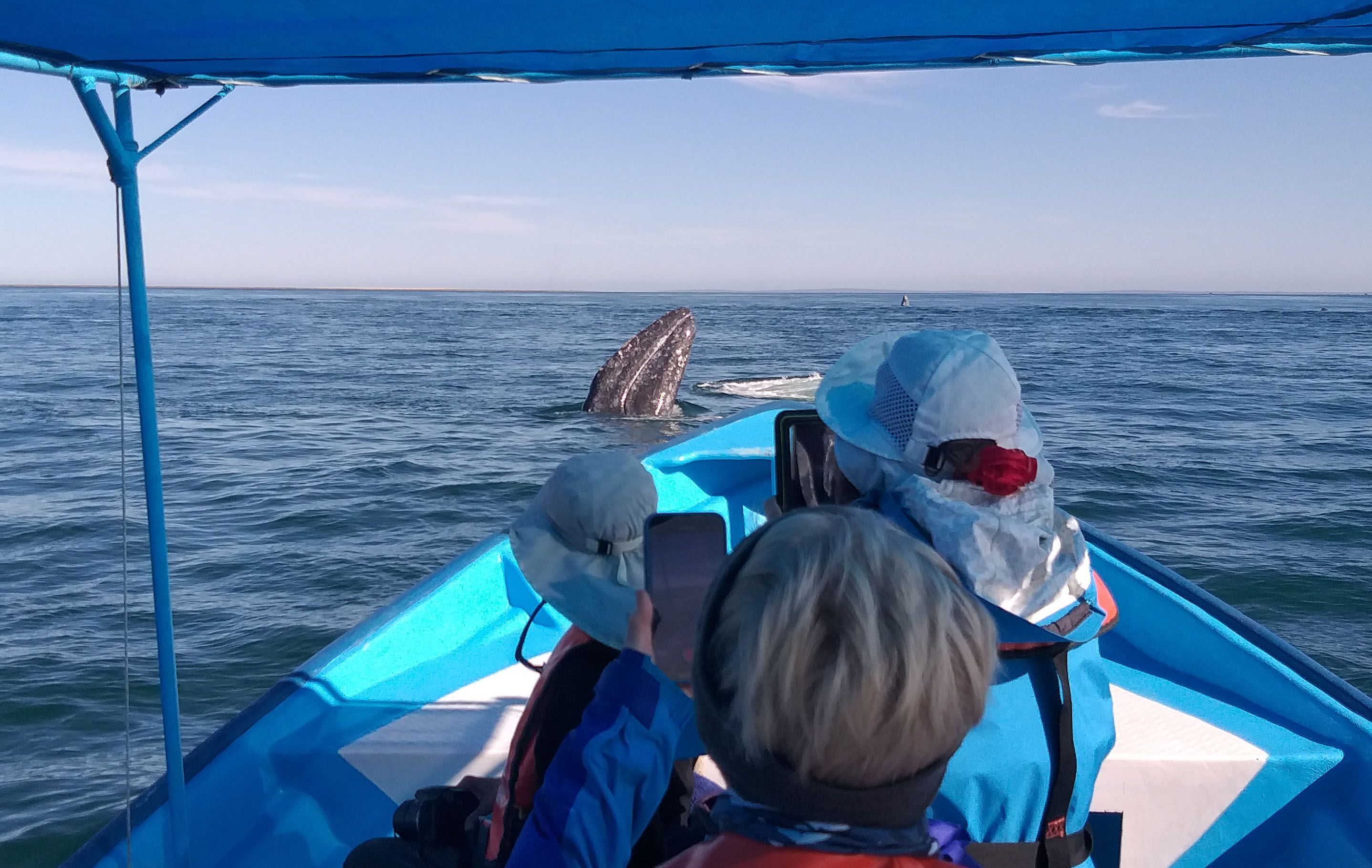 We welcomed our day with an early whale search. On our way to Boca de la Soledad, we observed double-crested cormorants, magnificent frigatebirds, white ibis, and great and snowy egrets perched on the white mangroves at the north end of Isla Magdalena. Our panguero, Carlos, pointed out a massive bald eagle nest where an adult was guarding the surroundings. As we passed in front of Isla Pelícano, we saw a large flock of American white pelicans standing out among dozens of brown pelicans.