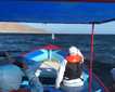 After lunch, the crew set up the Global Gallery and our guests did some shopping. Next, we were ready to head to sea and search for some whales. However, the weather and low tide did not allow us to access where they were, so we went to our plan B: mangrove ride and a visit to a local oyster farm. Here the owners explained the process of growing oysters and we got to taste some.