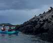Both before and after lunch we were able to spend some time on the bow as we navigated the narrow passages of Canal de Soledad. After dropping off our local pilot, Sergio Camacho, who helped us through these shallow waters, we lowered our Zodiacs and kayaks to spend the afternoon exploring the mangroves of El Barril on Isla Magdalena. It was very low tide, so we got a good look into the intricate root systems of this hugely important ecosystem, and we watched feeding shorebirds on the exposed mudflats.