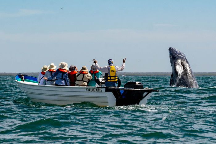 We are capping off our week with the great whales with gray whales galore on board National Geographic Venture. Starting our explorations off at the northernmost end of the Magdalena Bay lagoon system, guests left from Puerto Adolfo Lopez Mateos in pangas operated by local whale watchers.