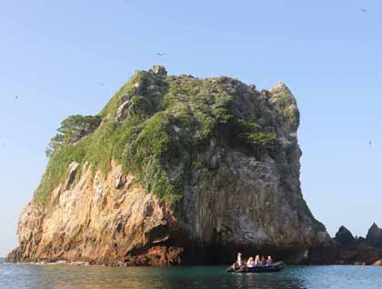 On our second full day aboard National Geographic Sea Lion, we awoke as the vessel anchored off Islas Bona and Otoque—two small islands in the Gulf of Panama famous as nesting sites for boobies, frigatebirds, pelicans, and other seabirds. Passengers eagerly boarded our expedition landing craft for journeys around the island. Motor drives whirred and shutters clicked as thousands of birds soared overhead. Guests thrilled to close-up views of blue-footed boobies, including a young chick almost within fingertip reach; and of male magnificent frigatebirds proclaiming their potential prowess as mates by inflating their blood-red gular sacs, all the better to impress females soaring overhead like kites on invisible strings.