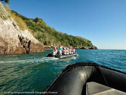The sun rose this morning as National Geographic Sea Lion finished its overnight 190 nautical mile journey for the first exploration of the day, Bona Island – a rocky tree covered outcrop jutting from the Pacific Ocean and home to thousands of birds.  During the morning expedition landing craft cruises along the rocky shoreline we saw, brown boobies, blue-footed boobies, brown pelicans and numerous magnificent frigatebirds.  The rocky outcropping of an island is such a rich rookery due to a strong upwelling of nutrient filled waters in the area of Bona Island.