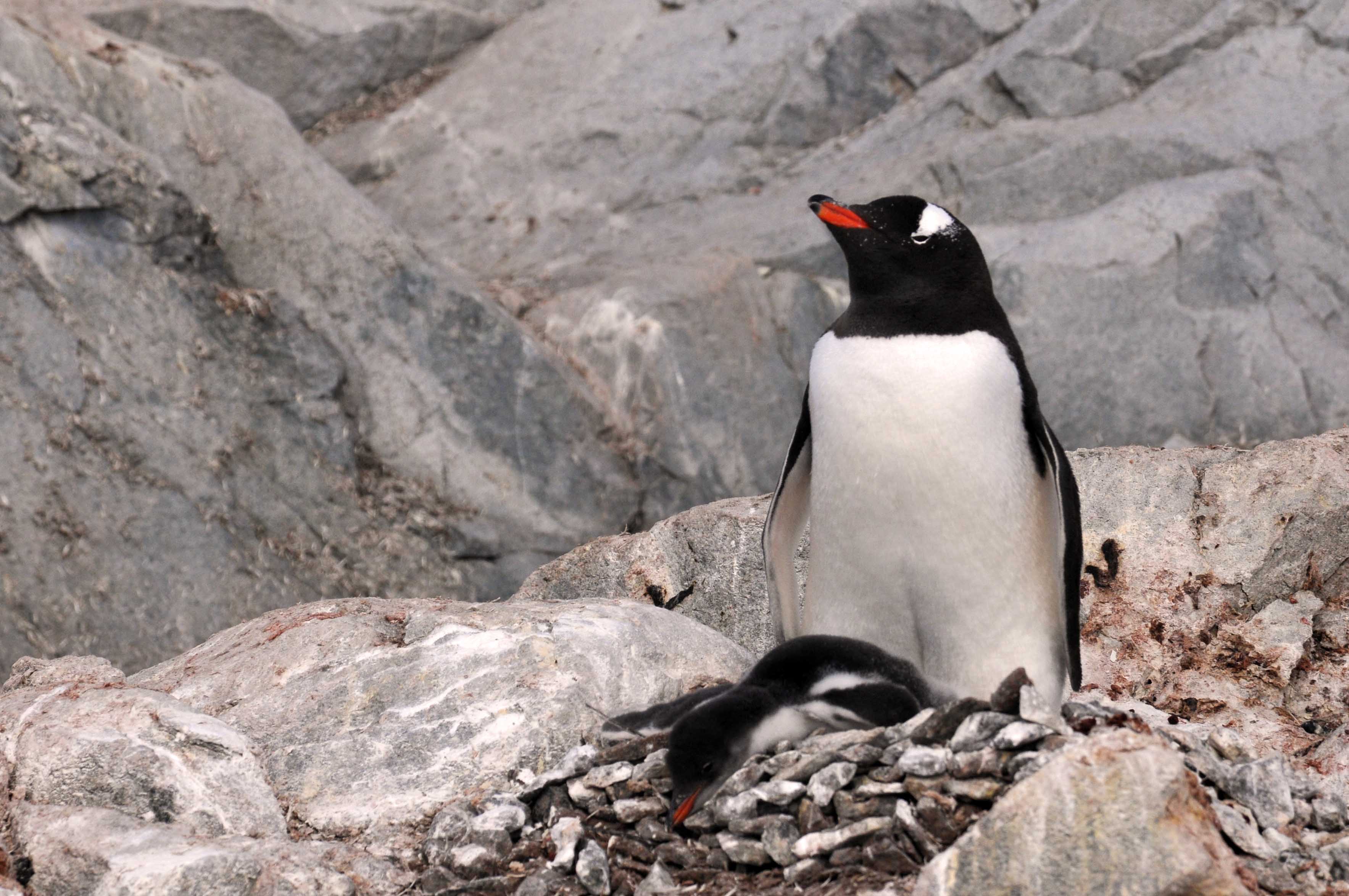 The afternoon’s grand-scale backdrop had a similar effect. Gentoos, Adélies, and blue-eyed shags provided a Jurassic Park-like soundscape for our excursion at Petermann Island. Icebergs rolled in the distance, sometimes making large exploding sounds that commanded our attention, and other times simply bobbing slowly to the swell of the sea. Today’s seascape and soundscape inspired awe in every way.