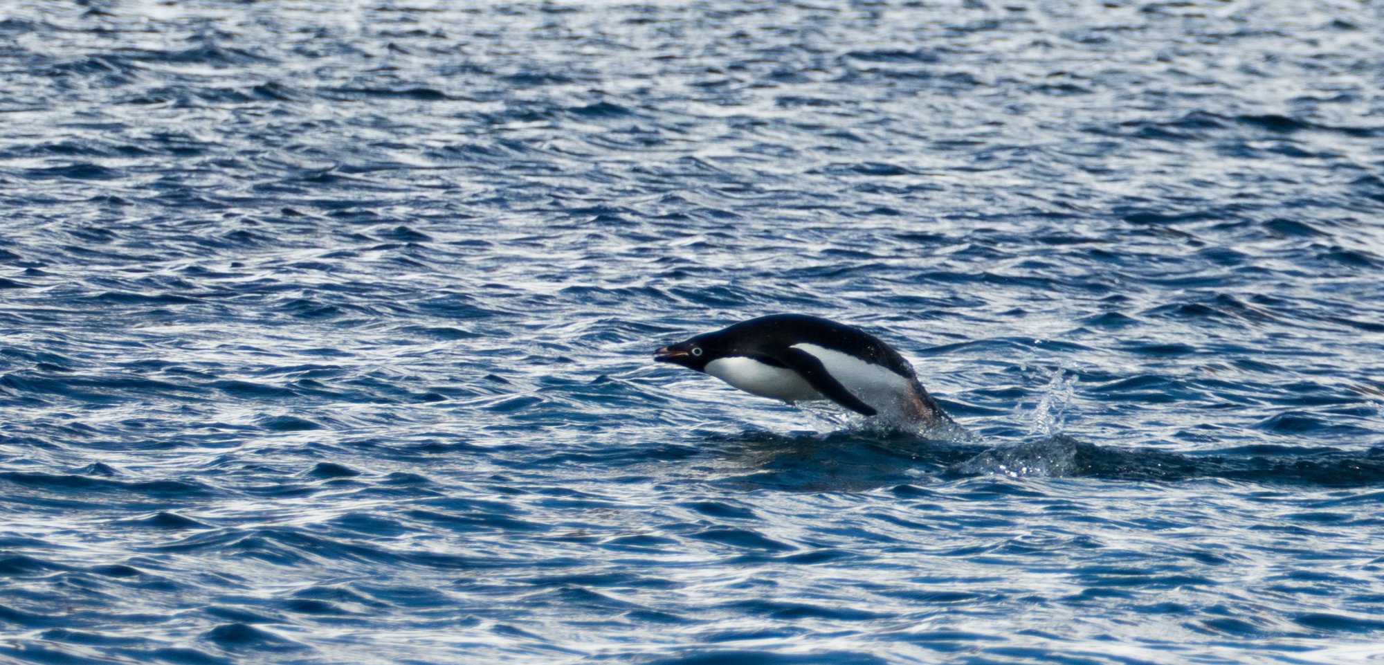 National Geographic Resolution spent the day surrounded by icebergs and sea ice in Crystal Sound as the weather got sunnier throughout the day. Guests experienced Detaille Island during the morning activities. Everyone went on guided Zodiac rides around the island where we saw numerous crabeater seals and icebergs. We stopped to observe an Adelie penguin colony, including dozens of penguins waiting to jump in the ocean. Many people went on shore to see the historic research hut from 1956-58, including all the original canned food and equipment kept in pristine condition. Some guests climbed the snowy hill to see the top of the penguin colony across a deep ravine. In the afternoon, the ship cruised around Crystal Sound so we could see the sea ice, glacial icebergs, and huge tabular icebergs. There were beautiful blue sea caves and arches in many of the icebergs, as well as dozens of crabeater seals on the sea ice. However, two humpback whales stole the show when they appeared in the sea ice near the ship. We could hear their loud exhaling and see them diving up close. The rest of the day was spent relaxing, enjoying a presentation, cocktail hour, recap, and dinner as the sun showed brightly in the west. What a perfect day to end our awesome week in Antarctica.