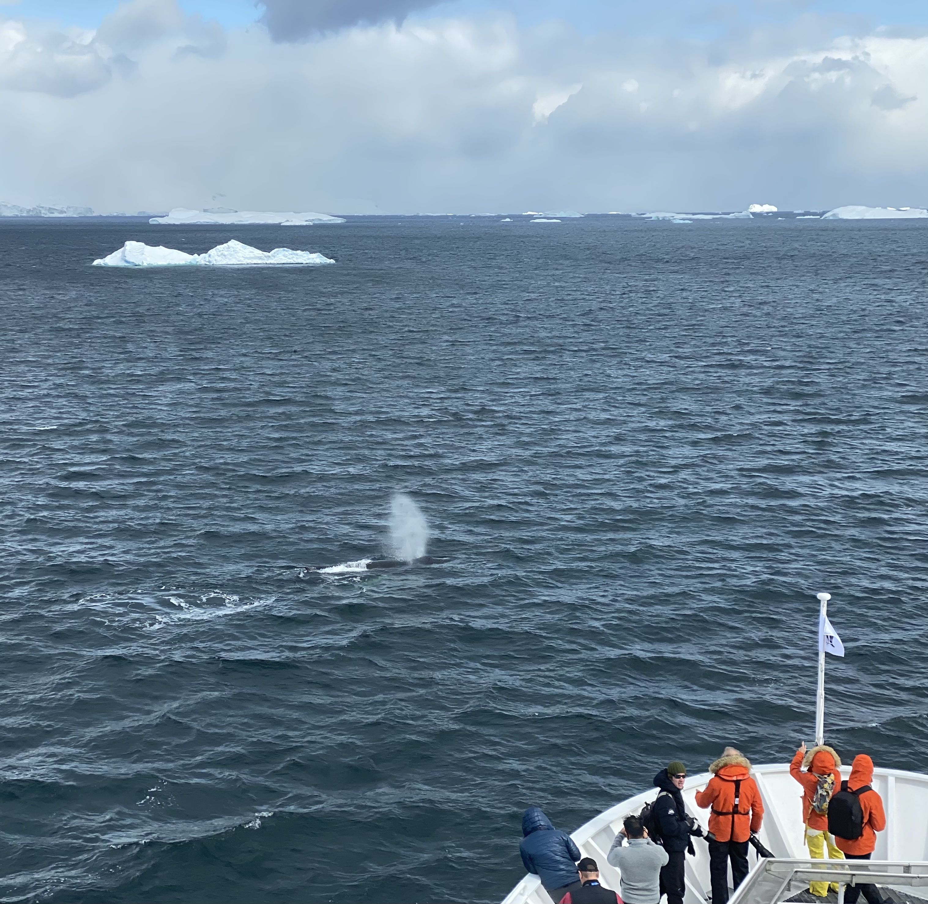 I love it when a plan comes together! We started our morning off in the sunshine at Brown Bluff with another incredible continental landing. The 2,444-ft cliffs just above the landing beach are remnants of an ancient volcano from around a million years ago. The beach and waters just offshore were teaming with wildlife. Home to both Adelie and Gentoo penguin colonies, the beaches can be quite busy with streams of marching penguins, and we even spotted several nests with newly hatched chicks.