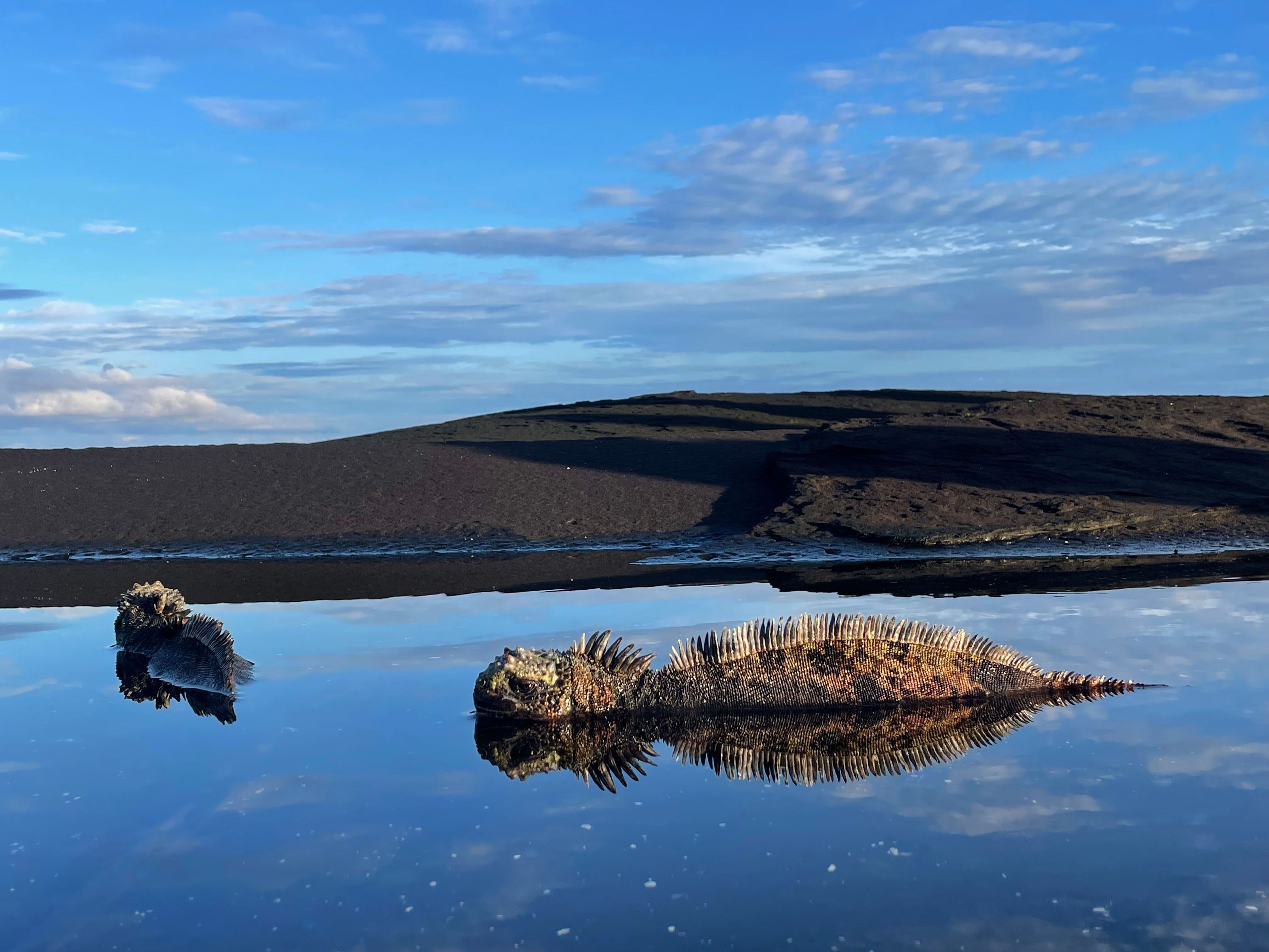 This morning, we embarked on a scenic hike at Punta Pitt, San Cristóbal Island, where we found all three booby species - red-footed, blue-footed, and Nazca. We also took a Zodiac ride along the rugged coastline for close-up views of dramatic cliffs, surrounded by seabirds and sea lions basking in the sun. In the afternoon, we kayaked around Cerro Brujo’s golden cliffs, followed by a relaxing stroll along its pristine white-sand beach. Some even enjoyed a refreshing swim in the turquoise waters. This perfect day ended with a cruise around Kicker Rock, lit in the golden light of sunset.