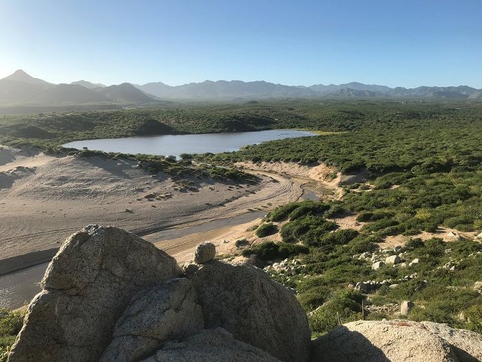 In the afternoon, hikes explored Cabo Pulmo to see the area from a different perspective than in the morning. Beach combers searched the shoreline, finding colorful shells, washed up corals, and skeletal evidence of birds and fish. Another hike went out to the lagoon and watched coots dabbling for food. Merlins swooped down in search of a meal and turkey vultures rode the thermals above the lagoon – a truly productive place. The adventurous hike made their way across the beach, explored the lagoon, and then found a trail to lead us up the hillside. From the trail, the breeze was refreshing and the view was spectacular. We hiked until we were at eye level with the turkey vultures, and then took a few moments to take in the beauty of the area.