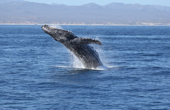Our experiences today were diverse. We started with sunrise at Land’s End, moved on to birding in the town of San Jose del Cabo, and ended with us cheering on a cow and calf humpback whale as they breached nearby. In town we enjoyed the juxtaposition of an arid desert and a life-giving river. The diversity of birds we found included hooded orioles, cactus wrens, and white-faced ibis. The elusive Xantus’s hummingbird was found as we poised for a vigil at a blooming orchid tree. We fortified ourselves with paletas, the local ice cream favorite, as we waited for the hummingbird to call on the large pink flowers of the Bauhinia. The exuberance of a young humpback whale breaching repeatedly was mirrored by its mother. The two animals alternated between pectoral slapping at the surface and flinging their bodies free of their watery realm. The loud clap created by the slaps echoed across the water. Conditions were calm and we dropped our hydrophone into the water. Male humpback whales could be heard singing nearby and their chorus included screeches, blurps, groans and rude sounding digestive noises. It was magical.