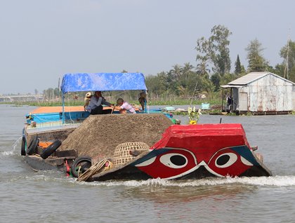 In the afternoon, after relocating about thirty five kilometers north of our morning destination, we boarded the same sampans and cruised through more narrow canals to the very small village of Sadec. Here we walked through local homes and watched the labor-intensive process of making sleeping mats. After walking around through the houses, we made our way to the community center where two village elders spoke to us about the history of the region, and answered any questions we had. It was a fascinating account of local history, and a great opportunity to hear firsthand about living in Sadec.