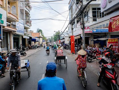 It wasn’t long after we had a scrumptious breakfast that we were off to visit Cai Be. On our way in, we saw the timeless process of people selling fruit on the water, advertising their sales by hanging it high from a large pole from the front of their boats. Our guides explained that although it looked very different from business operators we may have been used to, it had a lot of similarities. The fruit on the pole was simply the “advertising,” the people in the larger boats were the middle men who had purchased their products from the farmers, and the people pulling up in the smaller boats were the “drive-through” customers. It was great to see the timeless process happen and was a delight for the photographers.