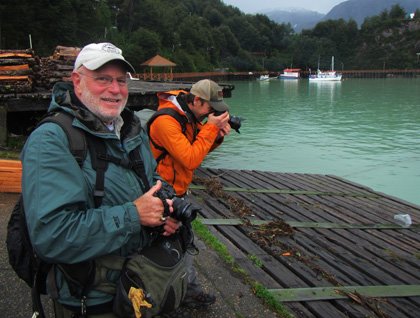 Early on we had fierce winds gusting up to 30 knots but after a turn around a headland, the next leg of the fjord was flat calm and with not even a ripple in the water. Another turn and the sun was coming out of the heavy clouds and washing over the little town of Tortel, our destination for the morning.