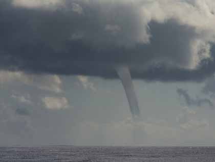 As we continued sailing around the cape region looking for more humpbacks, we had the chance to admire a brief but very impressive phenomenon as a waterspout formed in front of us, carrying sea water up to the clouds above. Wow!