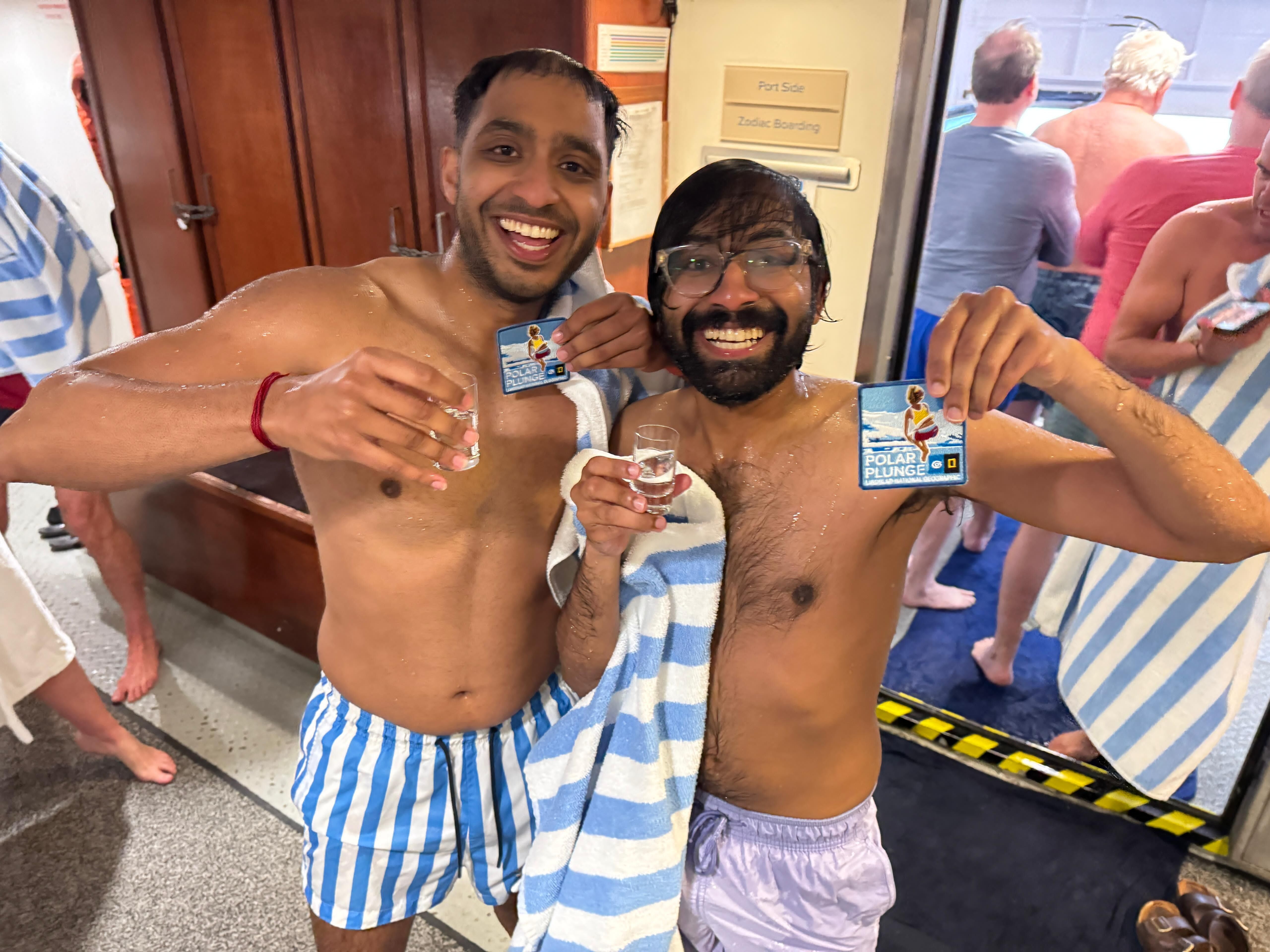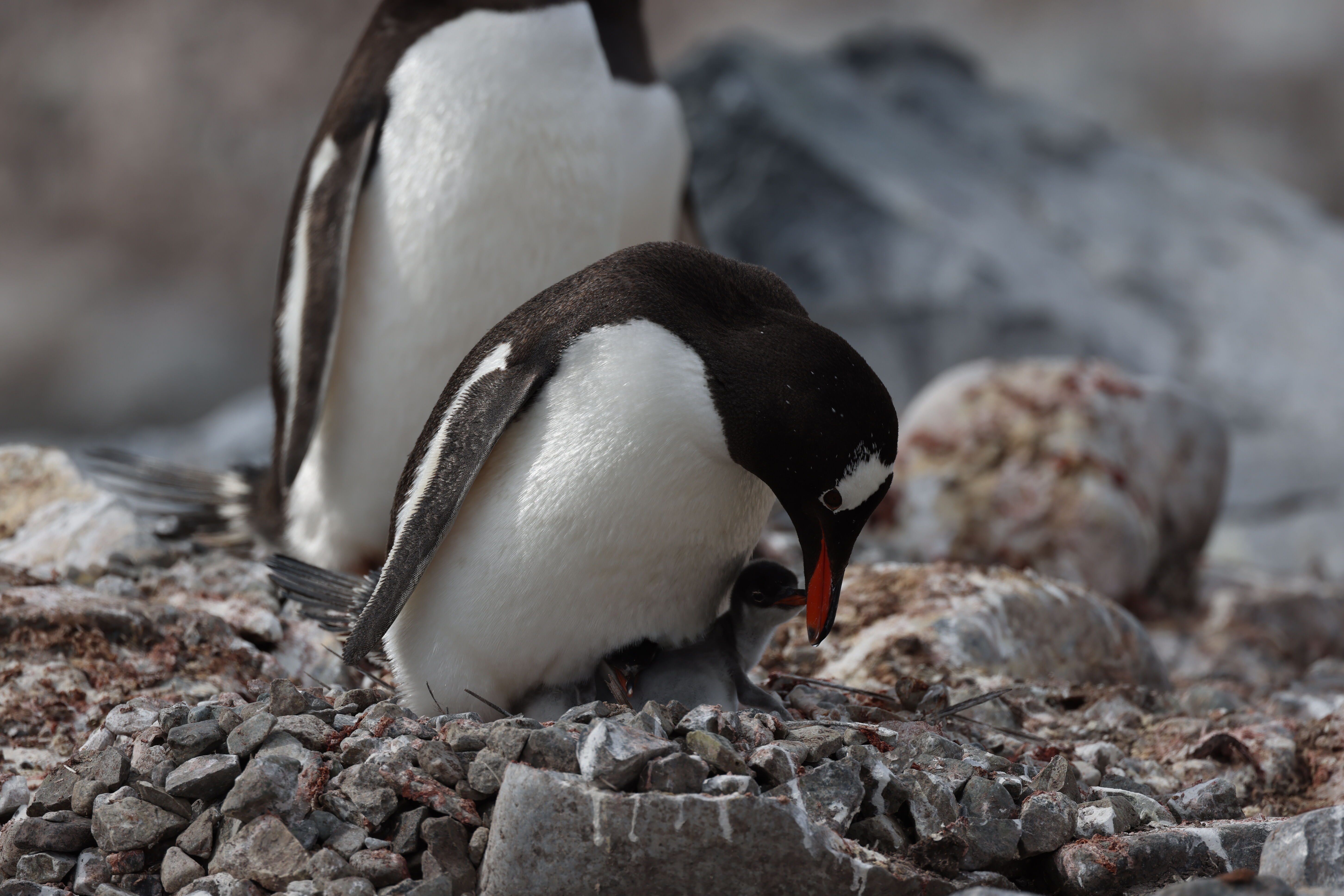 Snow flurries and wind picked up mid-day and reduced visibility, only making our Zodiac cruises around Devil Island more magical. Grounded pieces of sea and glacial ice created a sculpture garden to explore. Smells and sounds of the Adelie colony carried far from shore, and we delighted in watching penguins leap onto and dive off the icebergs. Multiple members of the National Geographic Endurance crew and staff previously worked at research stations on Antarctica, so this evening they shared stories and photos, deepening our appreciation of life on the continent.