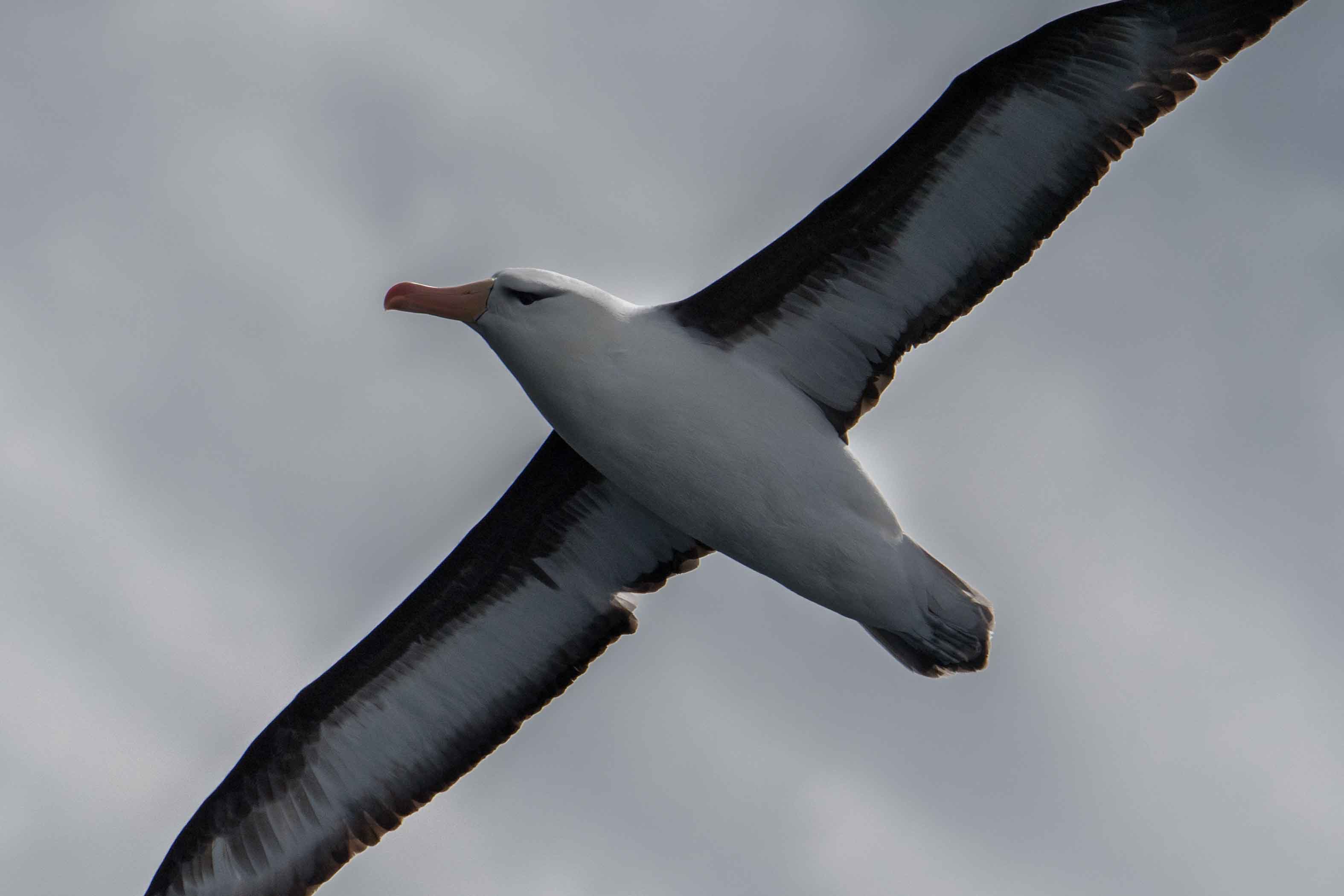 Captain Oliver Kruss masterfully navigated the ship along the coastline while we enjoyed views of the treeless landscape, with black-browed albatross and Antarctic shags following in our wake. We glimpsed the albatross silhouette built in 1992 in memory of the many sailors who died while making the passage around the Cape.
