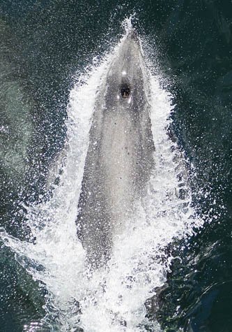 Today was not without more sightings. This morning there was a large group of black-browed albatross, petrels and some Magellanic penguins on the water beside the ship as well as several albatrosses showing off their skills and soaring around the ship. This afternoon as we entered Beagle Channel we were accompanied by Peale’s dolphins, which chose to bow ride in front of the ship. The pressure wave created in front of the ship allows them to get a free ride and be pushed along. Dolphins, being toothed whales, have only one blow hole, and they were straight down below us, allowing us to practically look into their blow holes as they came up to breathe.