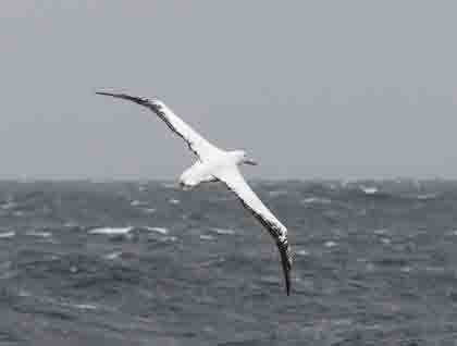 As dawn broke over the Drake Passage our stout little ship was bounding along over following seas. Our constant escort of seabirds had changed from the hundreds of pintado petrels that we awoke to yesterday, to some of their much larger cousins the wandering, black-browed, and grey-headed albatrosses.