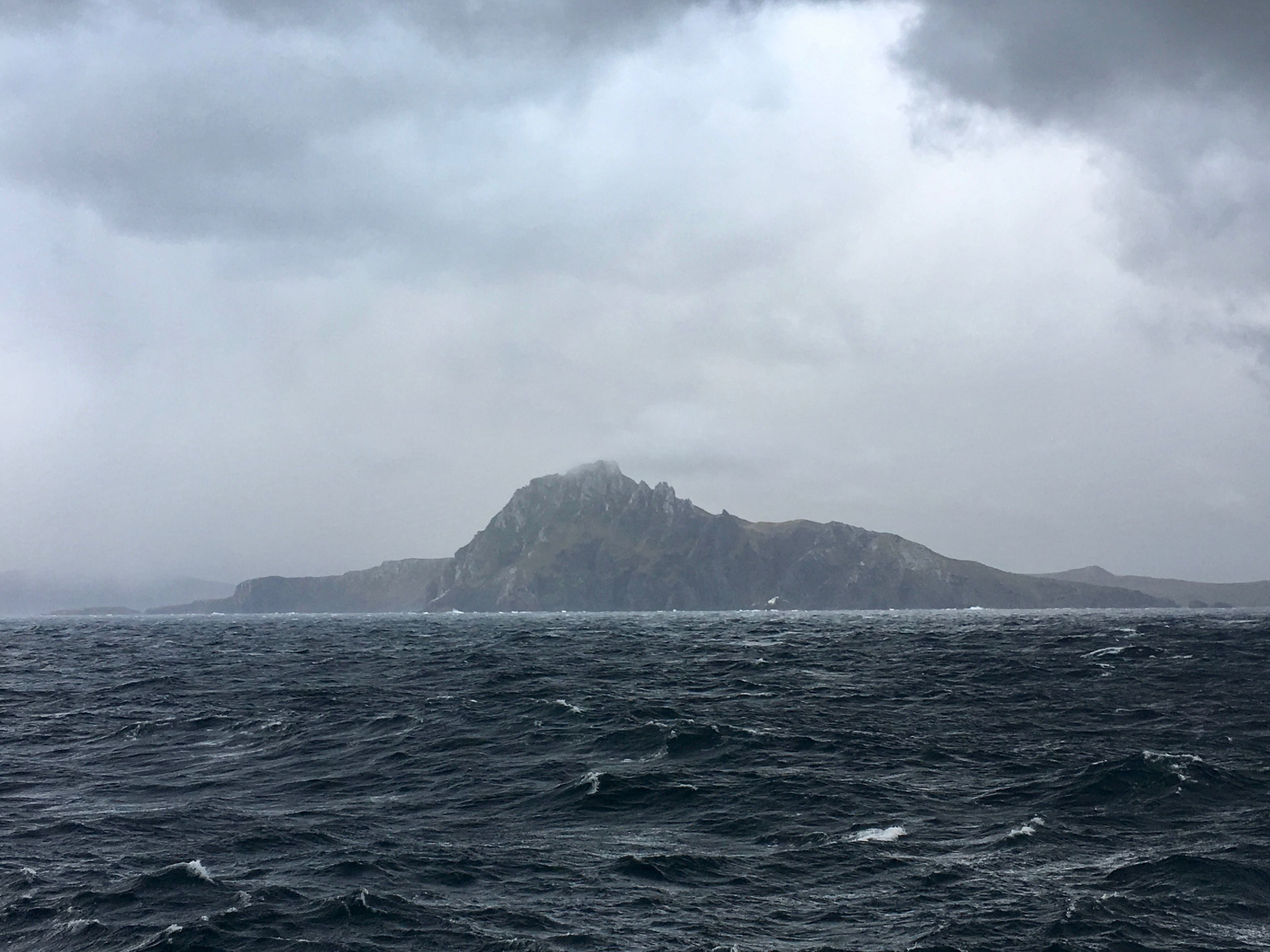 After an entire voyage of largely fine weather and calm seas we awoke to slightly more motion than we had yet experienced. Shortly after 6 a.m. the jagged headland of fabled Cape Horn began to appear out of the mist and low clouds that so often shroud this austere landscape. Flocks of sooty shearwaters, several species of albatrosses, and tiny storm petrels swarmed over the waves, attracted to their prey in these nutrient-rich waters created here by the upwelling of deep ocean currents. As our cozy little ship approached to within three miles of the cape we turned eastward and crossed the imaginary line taking us from the South Pacific into the South Atlantic. With the wind now directly behind us, our ride smoothed out as we made our way toward the eastern entrance to the Beagle Channel.
