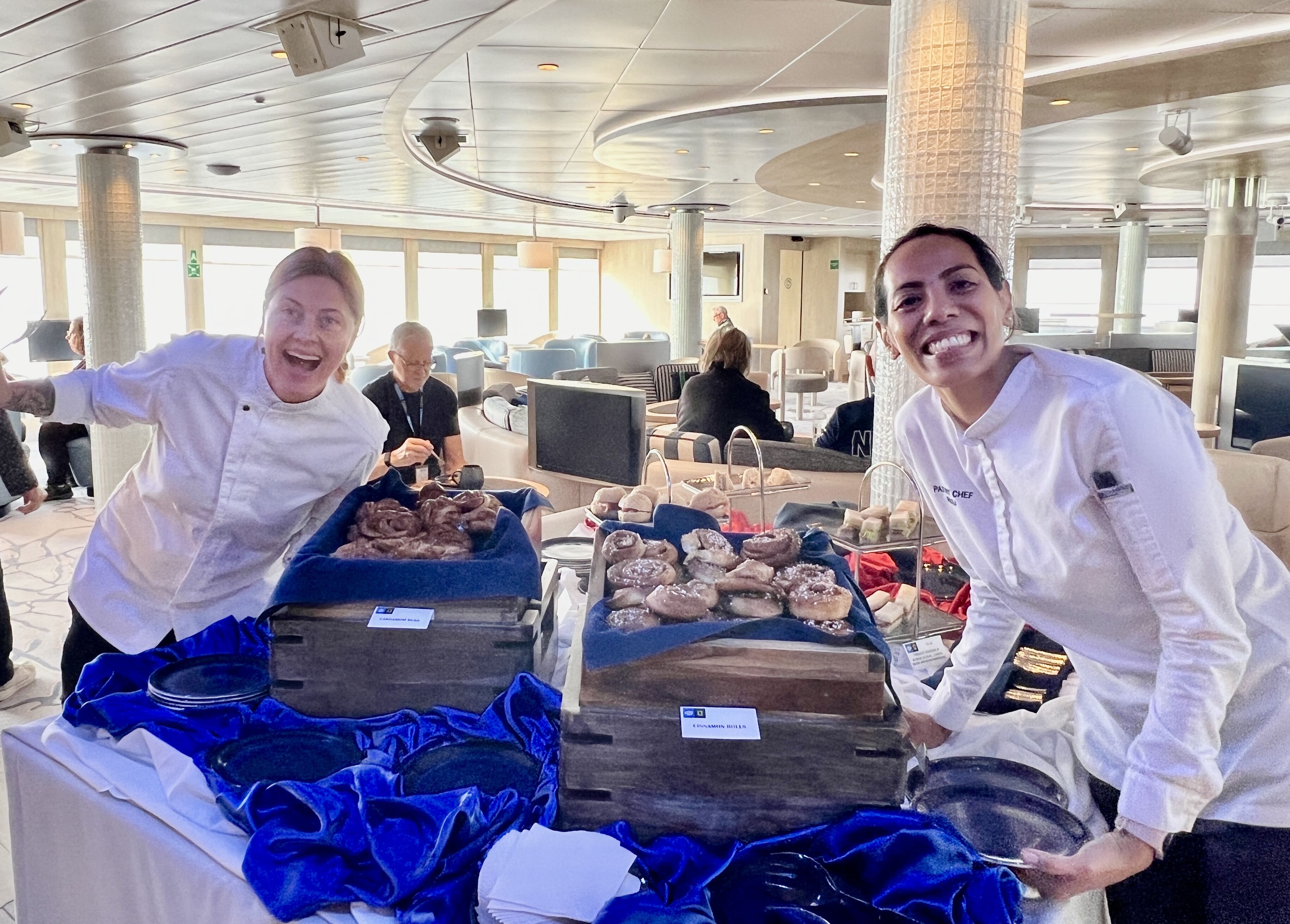 The afternoon was spent on West Point Island, making a long uphill hike to the far side of the island where a colony of black-browed albatross were nesting. With strong winds blowing, the birds put on a display worthy of an air show. The albatross share their nesting site with rockhopper penguins, who were quite busy getting started with their breeding season, gathering nesting materials and tending to newly laid eggs.