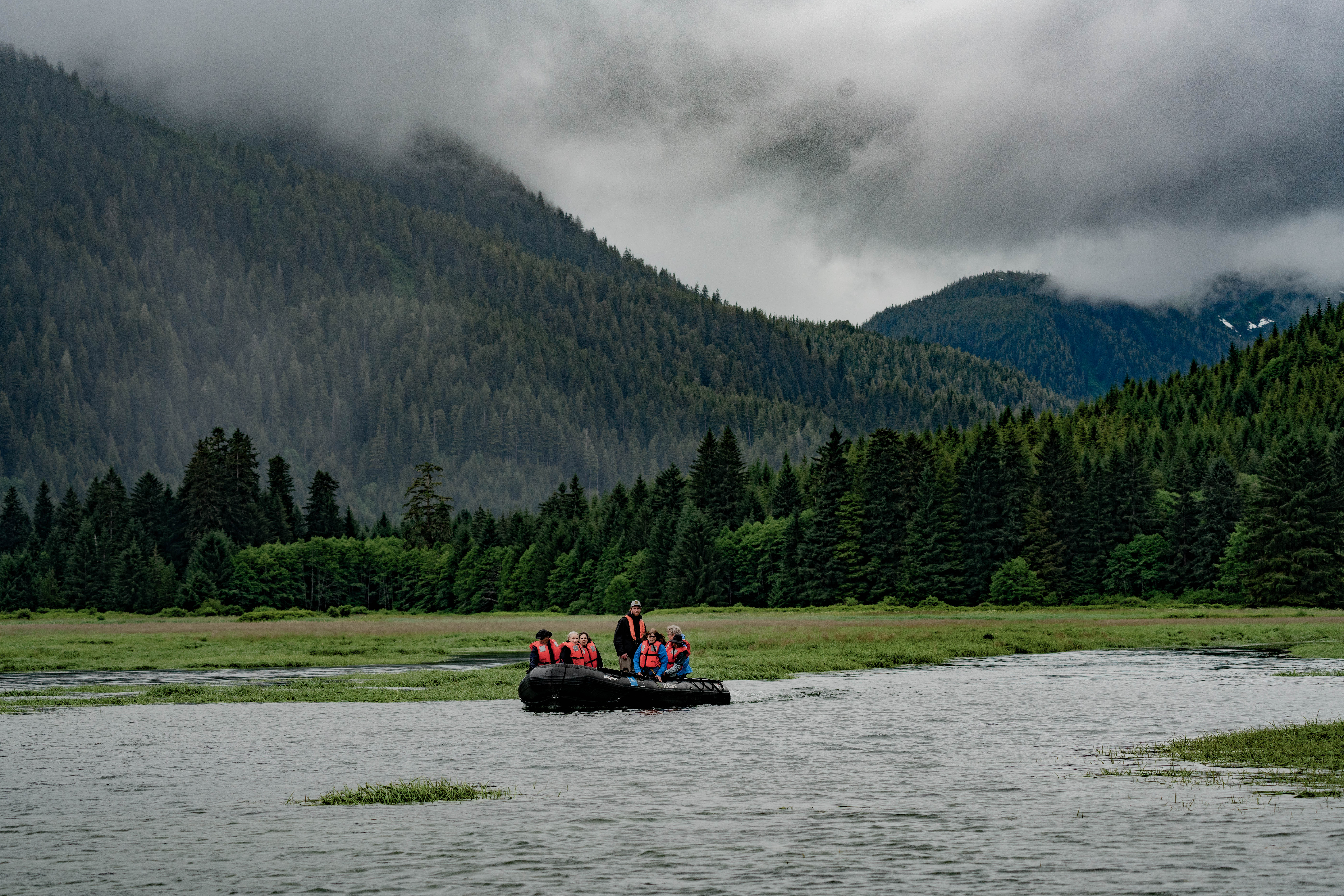National Geographic Sea Lion made her way through Icy Strait to the confluence of the Inside Passage and the Pacific Ocean this morning. Here lies one of the most special places in Alaska: the Inian Islands. From our Zodiacs, we had a truly expeditionary morning exploring the waterways between the islands. The extreme tides here bring a buffet of food for local wildlife, such as the sea otters, Steller sea lions, harbor seals, and bald eagles we saw this morning. We then made a short trip to Port Althorp, just south of the Inian Islands, and spent the afternoon hiking. The sun was out as we explored the coastline and then headed inland to the magical forest of tall trees, mosses, and ferns. After a crab feast dinner, the bow was the place to be as pods of Dall’s porpoises visited to bow ride the ship. It was a perfect day, encompassing everything it means to travel on an expedition.