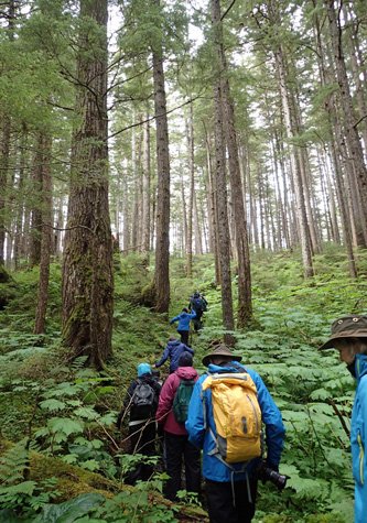 After feasting on Dungeness crab we retired to the lounge and revisited the highlights of our day over a scrumptious apple-rhubarb crisp. Alpenglow lit the snowcapped mountains to the northeast as the National Geographic Sea Bird navigated west in Frederick Sound towards sunset and tomorrow.