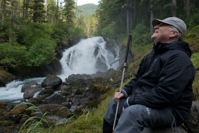 Just after breakfast, Zodiacs were ready to ferry our group ashore where we were instantly surrounded by the sound of a fast tumbling river and a roaring waterfall as a backdrop! A long, moderate and shorter set of hikes set out immediately heading in the direction of the roar of the falls. The rich soil of the area aided in creating an abundant beach ecosystem bursting with flowers, grasses and sedges! Nurse logs were everywhere sprouting miniature Sitka spruce and Western hemlock trees no more than an inch tall nestled in a myriad of lichens and mosses. As we paused and leaned in closer and closer we found British soldiers staring back at us, while just underneath them was a sizable patch of fairy barf...mosses fighting their way in and around everything. In a temperate coastal rain forest nothing is left unused. Every fallen tree becomes a new home for the next generation of growth, each member of the ecosystem vying for space to colonize, get established, reproduce and continue its life.