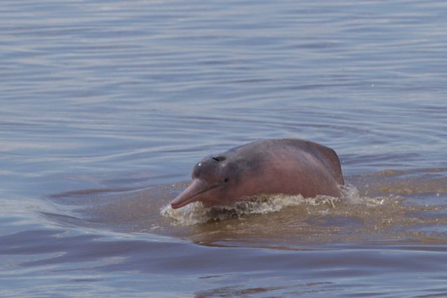In the afternoon we left for a tour onboard our skiffs. We had moved to the Yanayacu-Pucate area, a place where two rivers converge. We were welcomed by another unusual and magical resident of this region—the buffo, or pink river dolphins. We saw some gray dolphins too. All dolphins are proof of the geological past of the Amazon, when this area was connected to the ocean. Birders were in paradise as we spotted different kinds of herons, parrots, egrets and raptors.