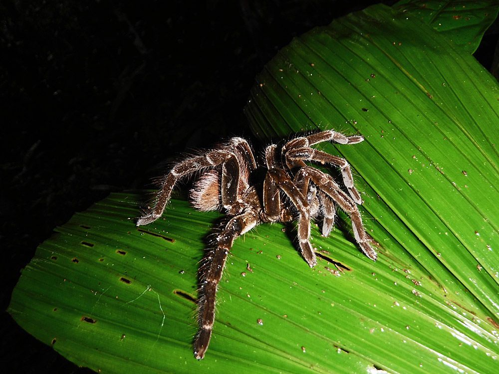 Along the trail, our expert naturalists explained some aspects of the fascinating ecology of the rainforest of the neotropics. Three native scouts from a nearby village came with us as well. Several rainforest creatures were spotted under a constant drizzle rain that accompanied us during the whole walk. We saw colorful poison-arrow frogs, tarantulas, and a green anaconda. We also saw one of the most beautiful rainforest snake species as well, the extraordinarily colored rainbow boa!