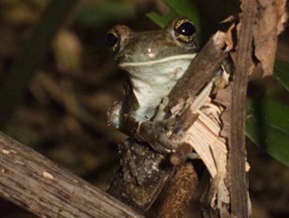 Later, we went for our first walk. The trails in the terra firme forest at Casual are interesting and lead through some beautiful forest. Add to this the local guides who repeatedly emerge from the forest with wonderful creatures, and this was a great spot for sure. Many frogs were encountered, both camouflaged and vibrant. Wonderful creepy crawlies, such as tarantulas, millipedes, and scorpions got people excited. A “small” Anaconda was certainly thrilling, and remarkable in its strength.