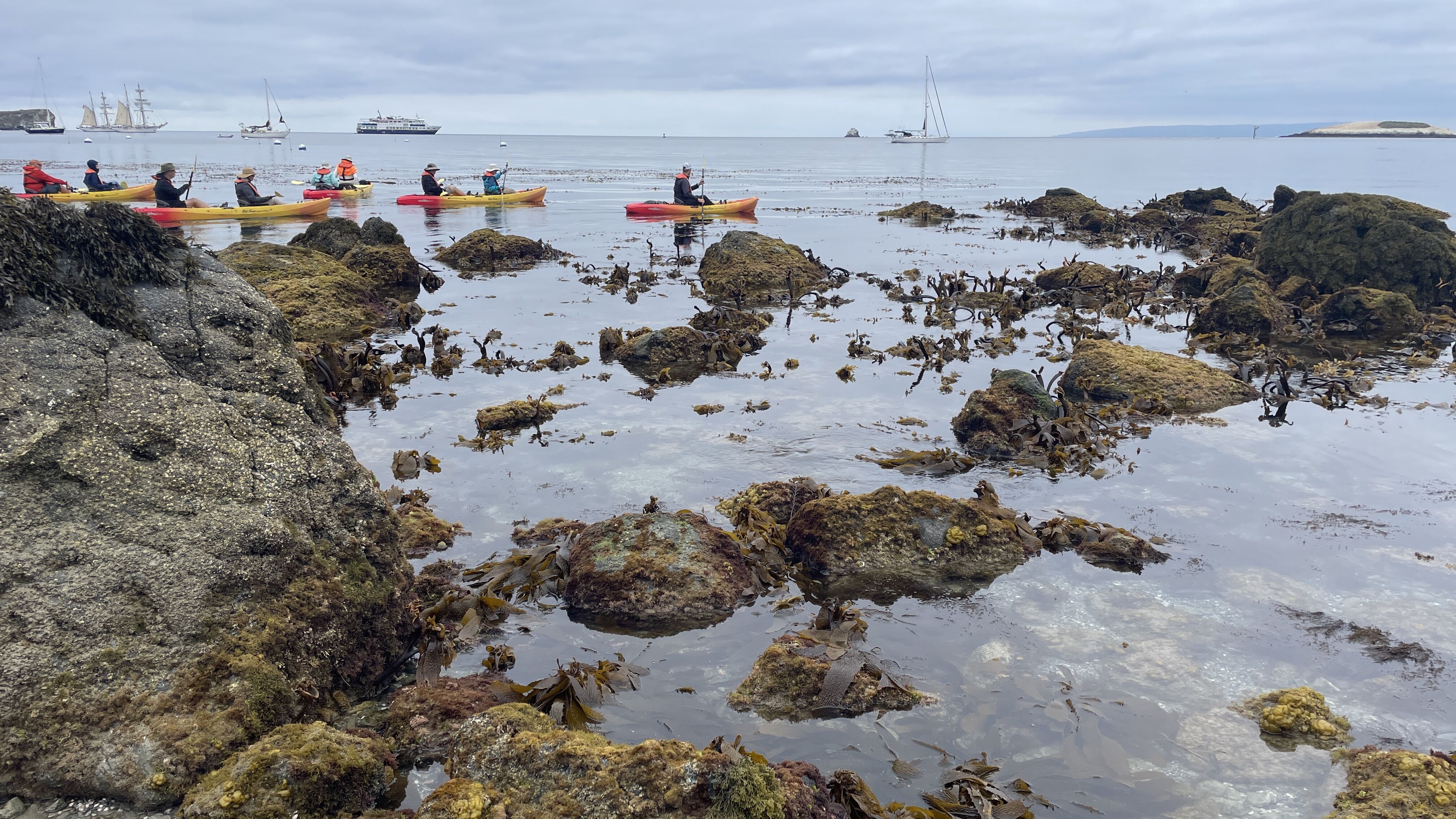 Last night, after much deliberation by the captain and expedition leader, our ship returned to the Port of Los Angeles to avoid high seas and winds. We made the most of our day in the city by taking advantage of well-crafted excursion. In the morning, many guests enjoyed the Aquarium of the Pacific, while others toured the USS Iowa, and others went for hikes and tidepool adventures near the bluffs of Palos Verde. The highlight of the tidepool adventure was finding an octopus under a rock! We all returned to National Geographic Quest for a very informative presentation by National Geographic Expert in Geology, Kirt Kempter. After lunch, we had another round of options, with a majority of guests visiting the beautiful Huntington Gardens, others learning about the last 45,000 years of fossils found in the La Brea Tar Pits, and plenty of others choosing to hike a challenging trail in Palos Verde. Spirits were high when we set sail towards the Northern Channel Islands after dinner, and all were looking forward to a presentation from Tim Hatler.