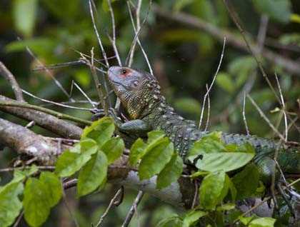 In the afternoon we boarded the skiffs again and we headed to Belluda Caño. This is a wildlife rich place. Close to the river we spotted macaws, monkeys, and reptiles such as iguanas, and a caiman lizard. We returned to the Delfin II in the darkness of the night because part of our plan included nocturnal exploration of the forest in search of bats and nocturnal birds.