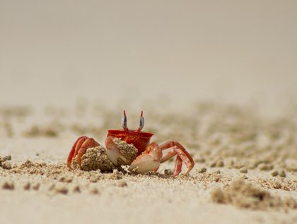 The Galapagos Islands are a sanctuary of wild life, and today we enjoyed more of the wonders that this paradise during our visit to the northern side of Santa Cruz Island. Cerro Dragon was the best way to begin our exploration, and after a comfortable dry landing, we were ready to get into nature in order to find land iguanas. From the very beginning of our excursion, we could see that nature’s marvels were on display, as sally light-foot crabs were found all over the rocks. Once we reached the sandy area, ghost crabs decorated the beautiful white sand beach.
