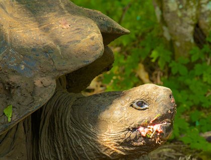 Farther into the trail, a brackish water lagoon was the perfect bird paradise as greater flamingos and white-cheeked pintail ducks were feeding on crustaceans. As soon as we came into the incense tree forest, it was time to look for the main attraction of the morning - Galapagos land iguanas. The first individual was found inside the vegetation feeding on prickly pear cactus fruits.