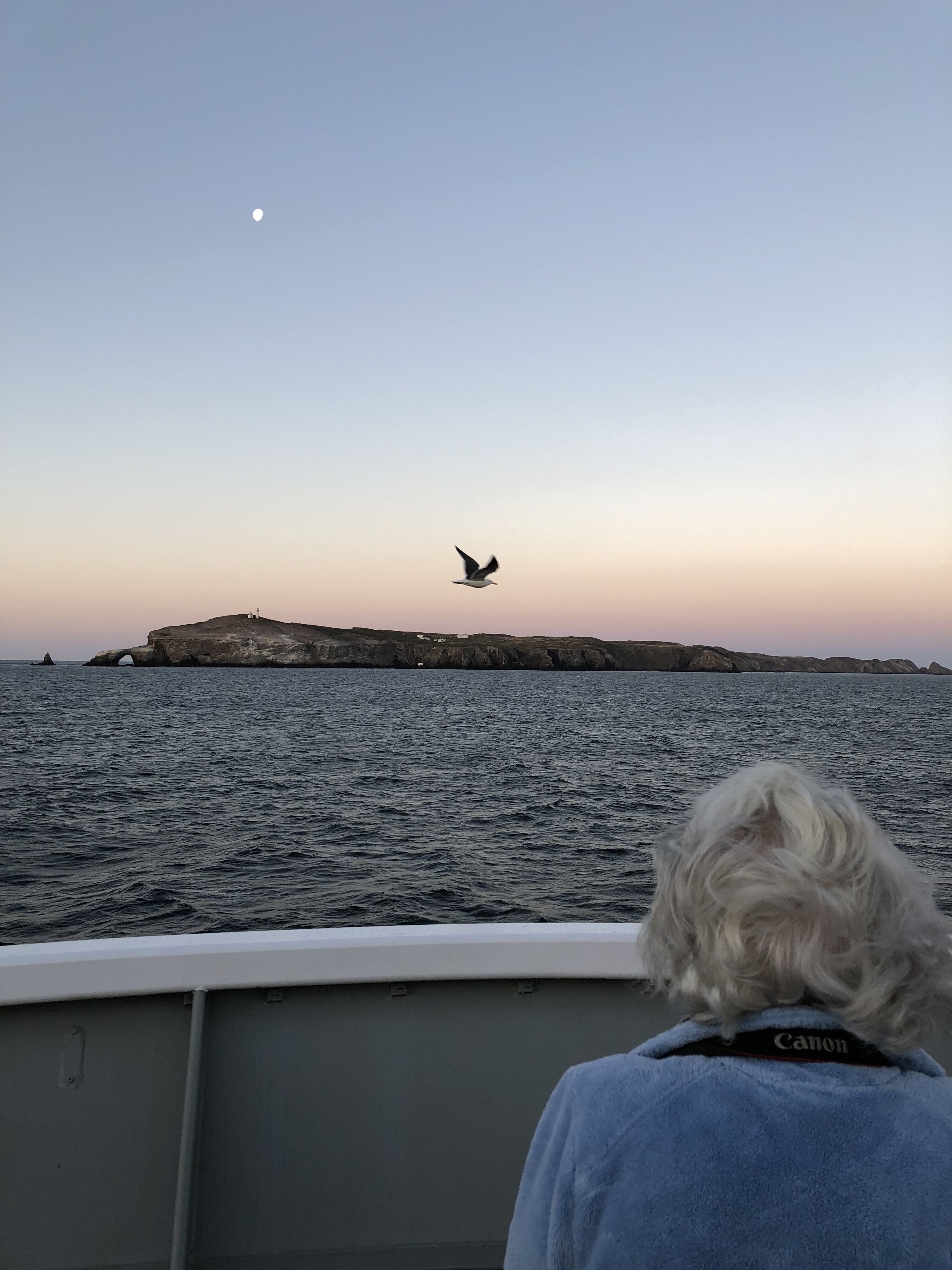 Our first day of excursion began with a celestial omen as planets aligned in the predawn sky. As morning broke, we arrived at Anacapa. The island was green with spring vegetation, and we saw flocks of western gulls, cormorants, and brown pelicans flying above the island. Three humpback whales, a pod of bottlenose dolphins, and a raft of California sea lions enchanted our guests as we cruised by. Later, guest speaker Tierney Thys used her talent of combining science with humor to introduce us to the amazing Mola mola fish.