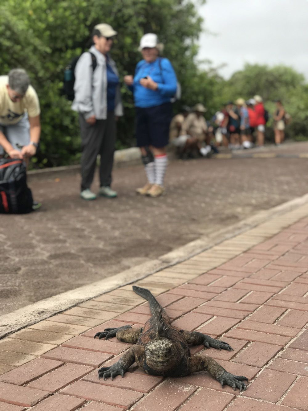 In the late morning, we visited the lush highlands of Santa Cruz. Some of us stopped to visit a charming school, Tomas de Berlanga, with outdoor classrooms. We descended into a lava tunnel, sampled coffee, moonshine and sugar cane juice at El Trapiche farm and then all gathered for lunch. At Rancho Manzanillo we enjoyed a bountiful buffet meal and then walked among and photographed giant tortoises. Tortoises were soaking in a pond, others rested, or slowly walked, fed on the short green grasses and went about their unconcerned lives.