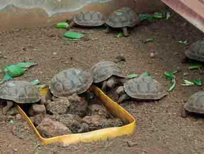 We began the visit to the Tortoise Breeding Center and first we saw the little tortoises that hatched just a few months ago. In one corral there were some from this year, only a few months old and crawling around, getting ready to live over 120 years.
