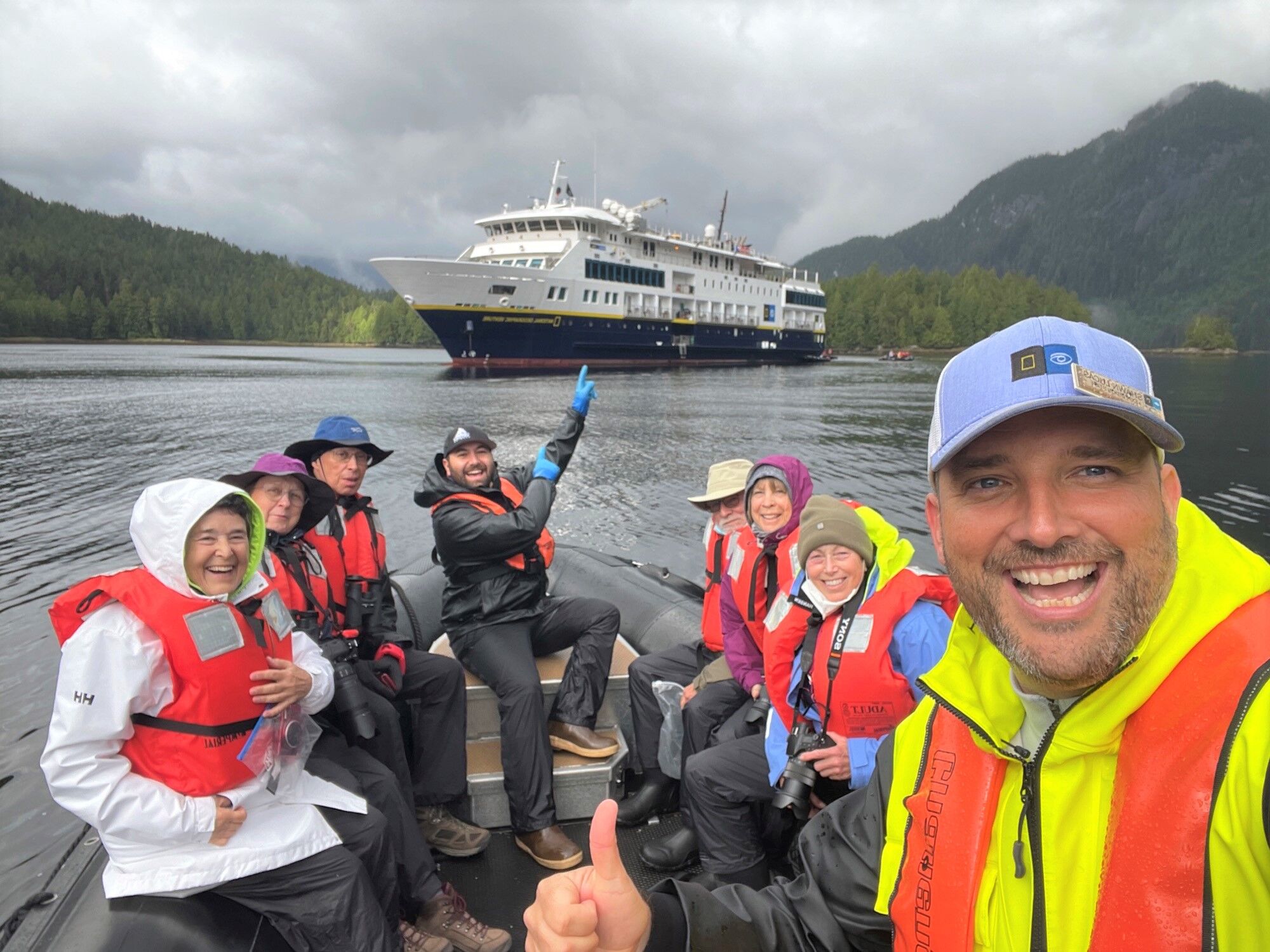 The waning hours of the afternoon were scheduled to be alive with conversation and presentations in the forward lounge, but the cetaceans of Chatham Strait had plans much different than our own. Killer whales decided a humpback impersonation was in order, breaching and tail slapping much like their athletic cousins. They continued to perform in this fashion, frolicking off all sides of the ship as if striving to make us strain our necks. Eventually, plans for presentations went off as anticipated, with certified photography instructor Shayne Sanders setting the scene for an unbelievable trip.