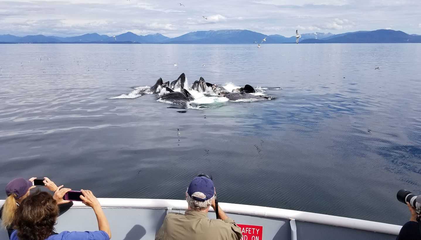 Wow, what an incredible last full day in Southeast Alaska! The morning began with a bang: We finally saw a group of humpback whales working cooperatively to catch herring using the bubblenet technique. Few people in the world have witnessed this rare and incredibly impressive behavior. What luck for us—and we hadn’t even had breakfast yet!