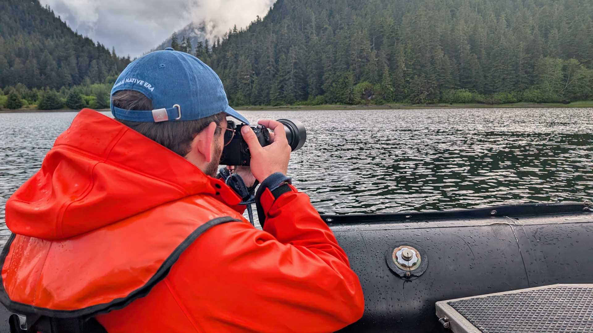 After lunch we went ashore at Kennel Creek, and many guests went for hikes in the rainforest, looking at birds and enjoying the scenery. As we returned from the hike, we spotted a brown bear grazing on the beach — and on the Zodiac ride back to the ship, we were able to get a great view!