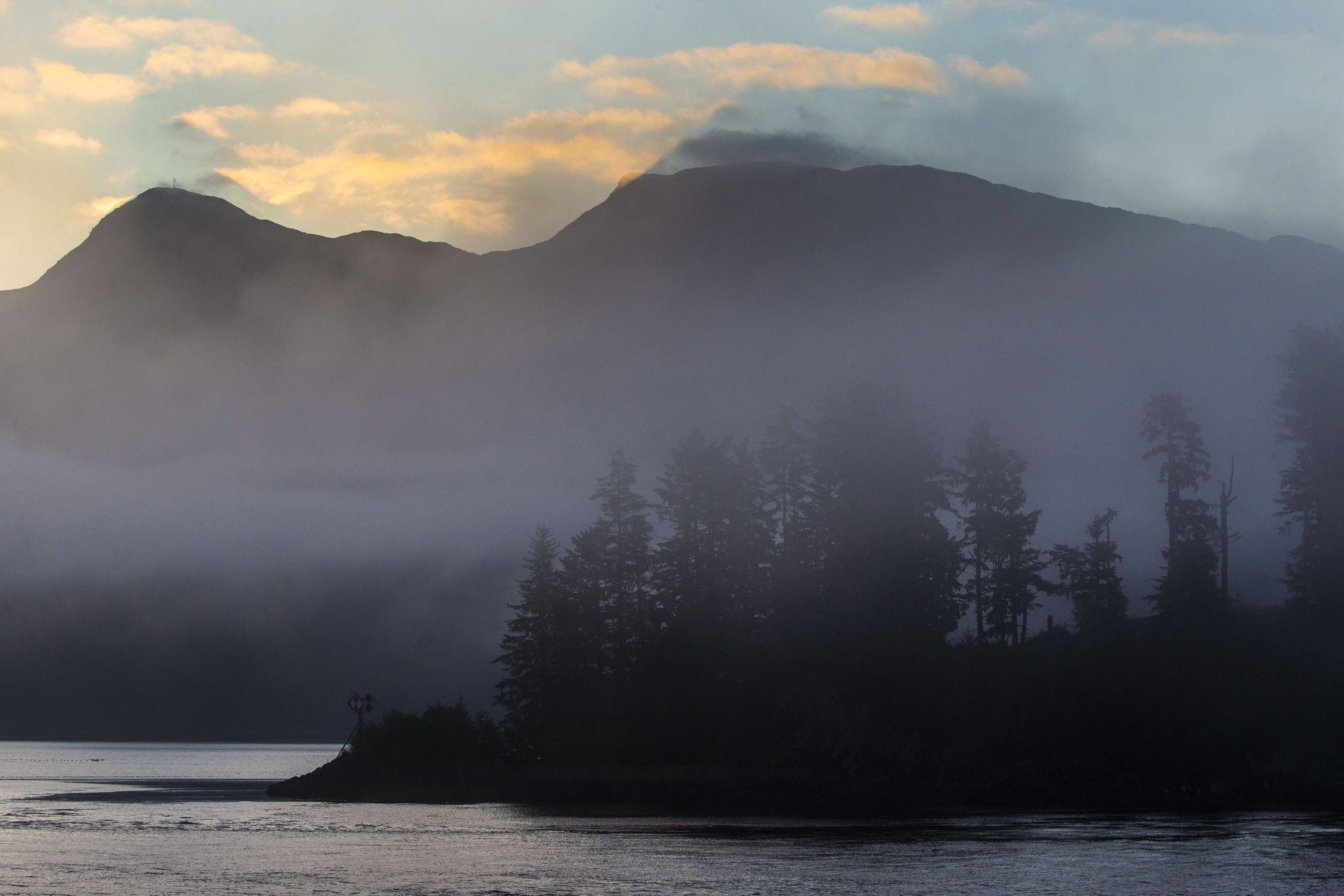 Guests woke up to a beautiful Southeast Alaska morning. A light fog hugged the tallest Sitka spruce as perfect pastel colors filled the skies. The quiet tranquility that greeted early risers didn’t last long as we encountered our first whale activity shortly after in Chatham Strait. Early trip briefings were given a welcomed interruption when we saw cooperative feeding from a group of seven humpback whales. Feeding events were broken up by breaching events and breaching events were broken up by feeding events. A perfect introduction to the magic and beauty of Southeast Alaska.