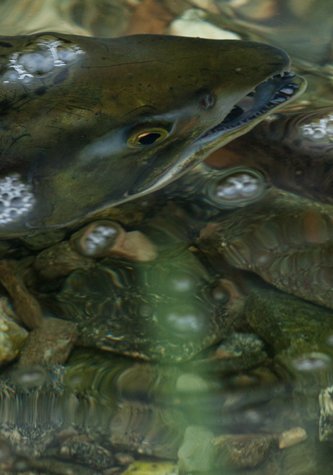Our morning outing was an exploratory walk through a meadow and along the stream. Some photographers stayed near the landing photographing the beach and surrounding area, while others ventured out in the inflatable boats, exploring the shore. Calls of ravens and gulls filled the air as we walked through the waist-high grass of the meadow. We watched bald eagles fly overhead and perched in Sitka spruce trees. Vibrant red elderberries punctuated the green landscape along the meadow, as did colorful mushrooms in the forest. Salmon in the shallow stream were a delight to watch as they swam upriver to their spawning grounds, at times coming out of the water in the process.