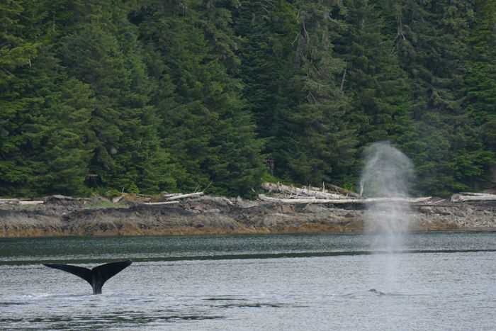 In the afternoon, we moved on to Pavlof Harbor on Chichagof Island. A lone brown bear on the shore derailed our plans to hike from that beach. We found an alternate trail, laid out our kayaks, and explored. Wildlife was plentiful. We spotted harbor seals draped over rocks and a humpback whale slowly cruising inside Freshwater Bay. Marbled murrelets whistled at our boats, ravens croaked from treetops, and crows patrolled the intertidal zone for edible morsels. Bald eagles stood still as statues, surveying the landscape from numerous spruce tops.