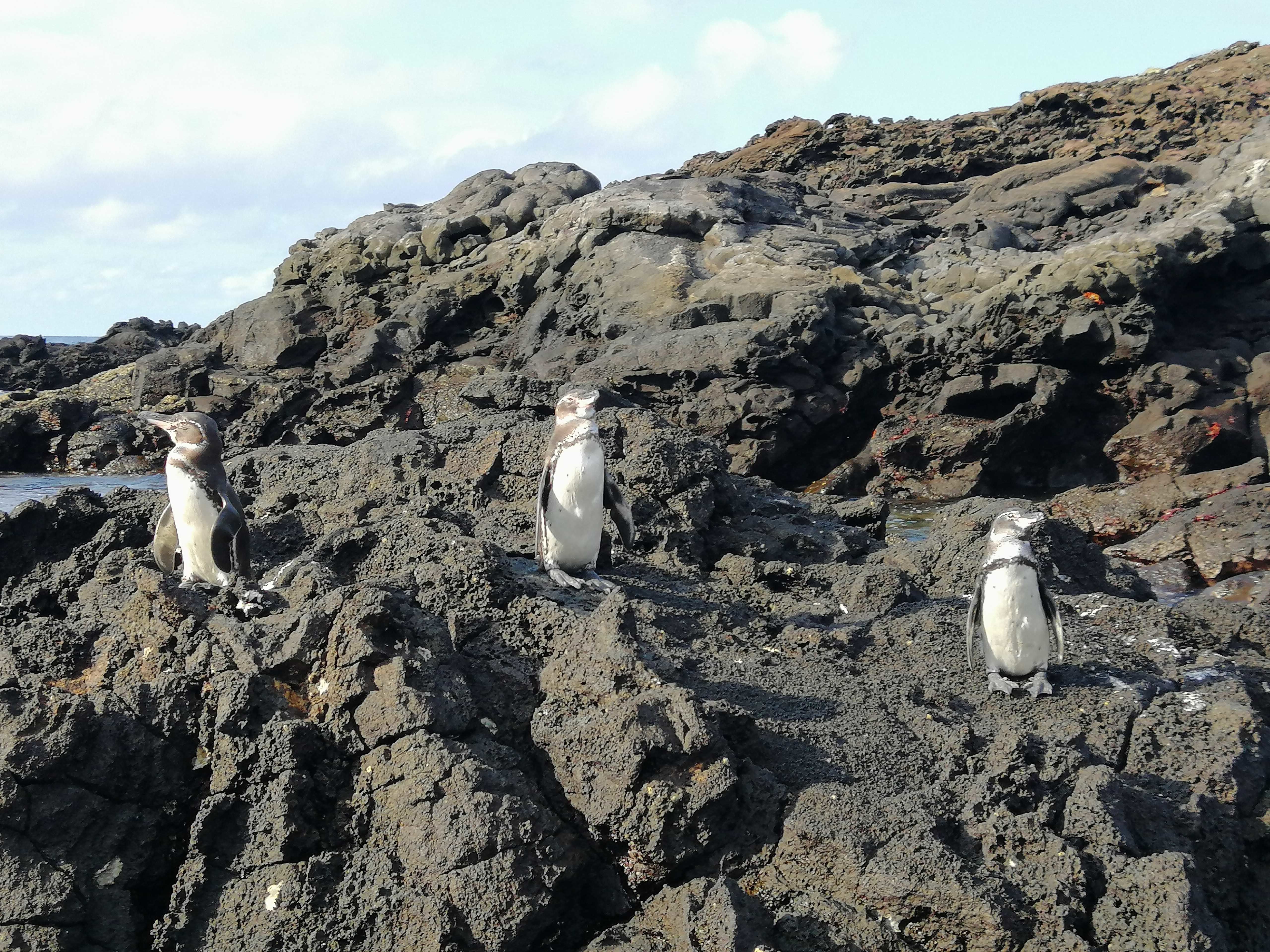Today new woke up in a canal between James and Chinese Hat Islands, where we kayaked and took a Zodiac cruise along the shoreline. Some of our guests went to a tiny white-sand beach on Chinese Hat. Afterward that, we snorkeled in the warm, clear water and saw penguins, white-tipped reef sharks, and tropical fish.